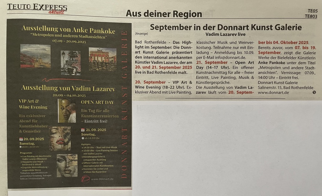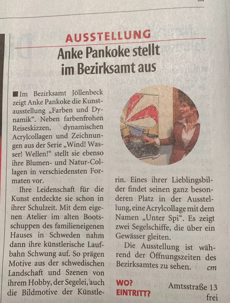 Anke Pankoke´s paintings have been shown in different exhibitions. You are invited to a review of these events with the help of the photos and the catalogues below, that give you an impression of the artworks shown.